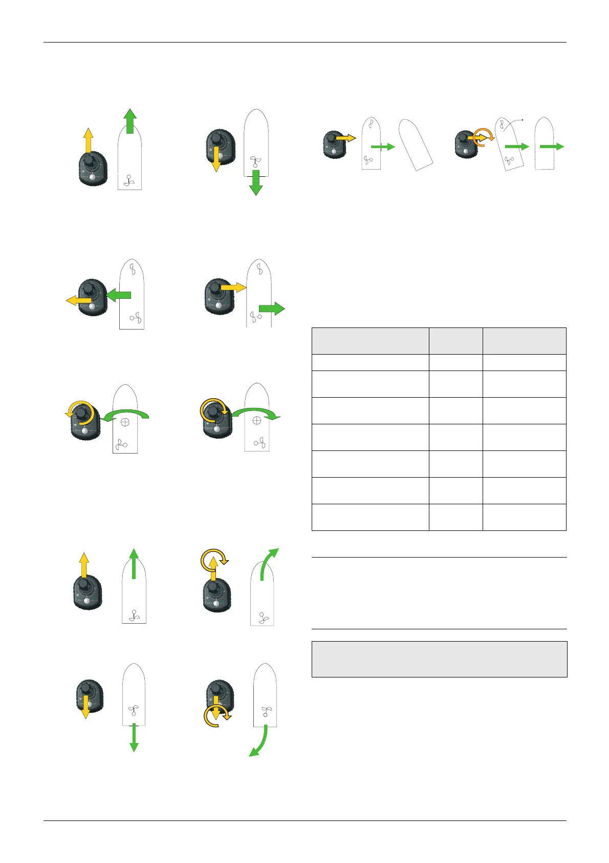Door de joystick naar de zijkant te duwen, zal de boot zijwaarts bewe-