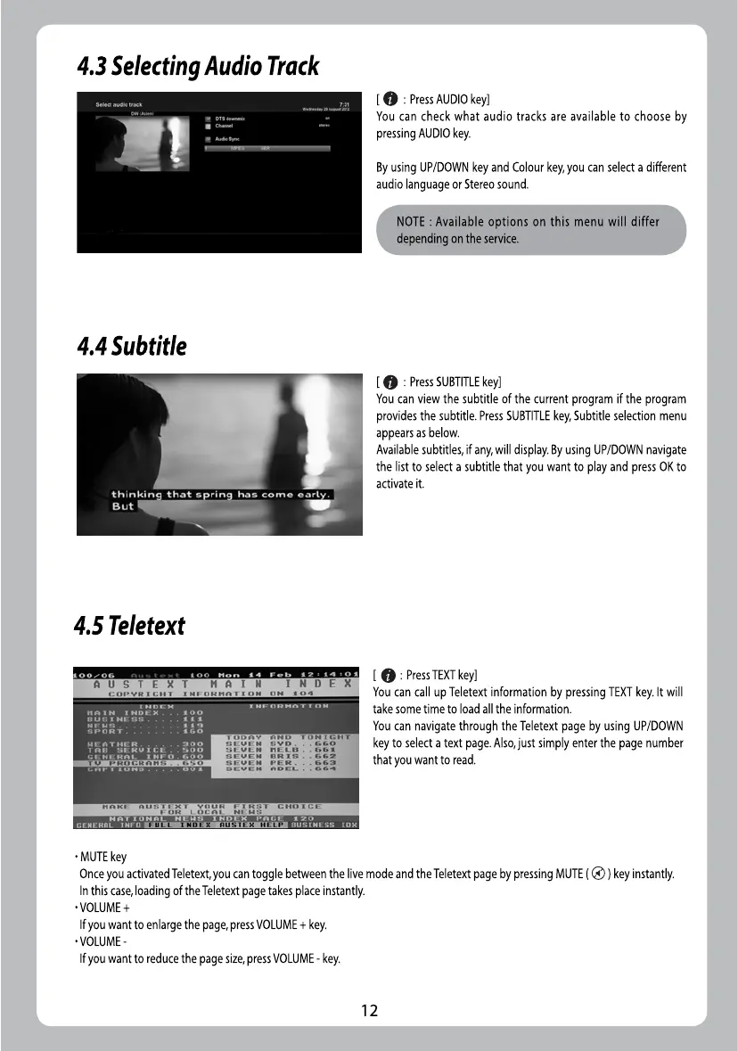ZGEMMA H.2S - 4.3 Selecting Audio Track; 4.4 Subtitle; 4.5 Teletext