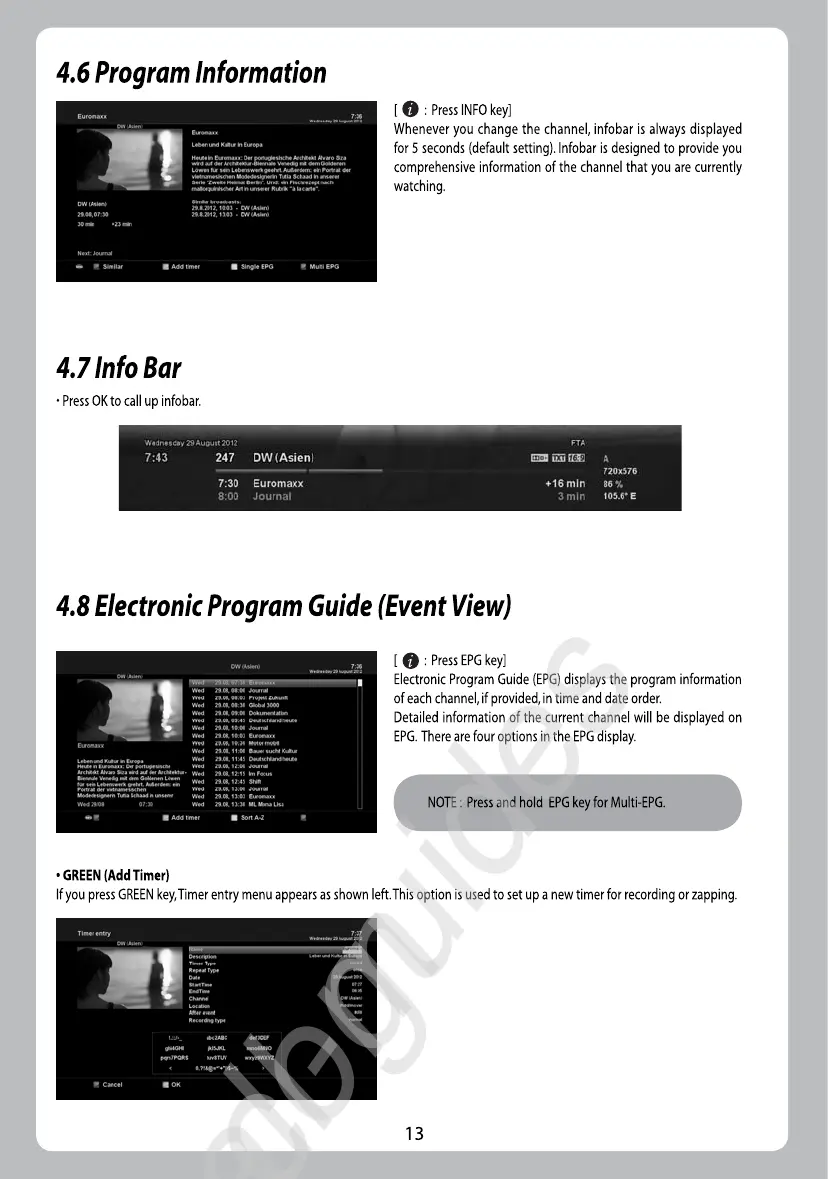 ZGEMMA H.2S - 4.6 Program Information; 4.7 Info Bar; 4.8 Electronic Program Guide (Event View)