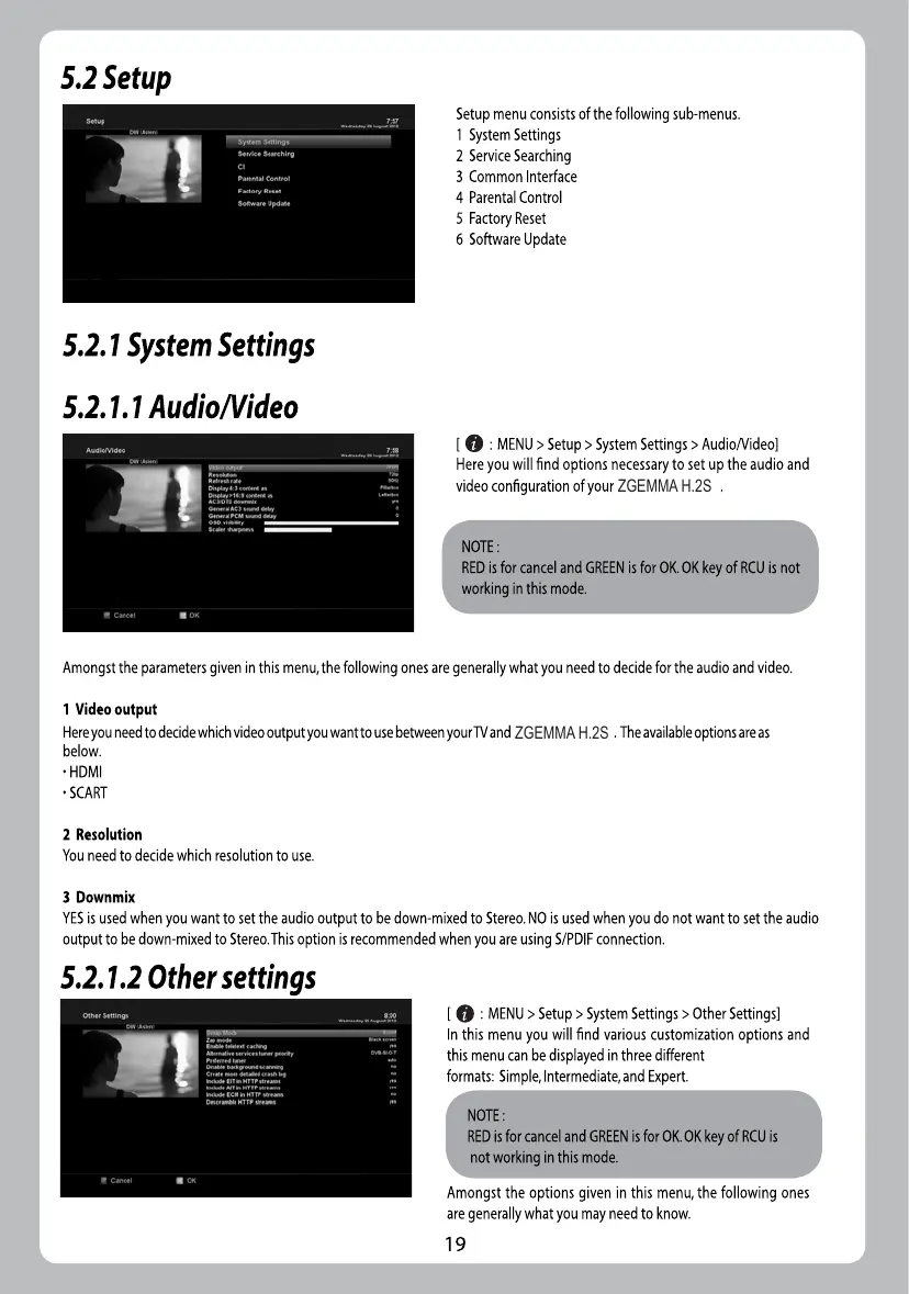 ZGEMMA H.2S - 5.2 Setup; 5.2.1 System Settings; 5.2.1.1 Audio;Video