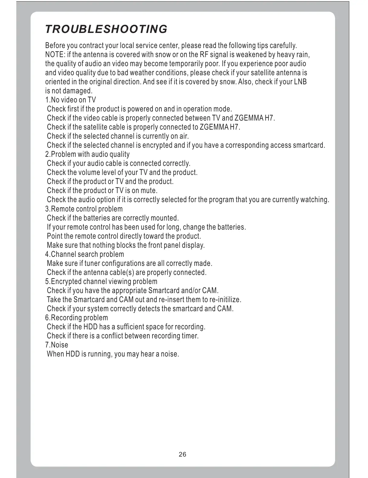 and video quality due to bad weather conditions, please check if your satellite antenna is