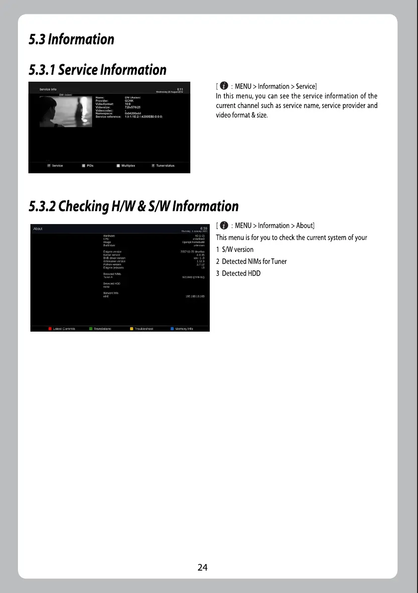 ZGEMMA H9S - Service Information; Checking H;W and S;W Information