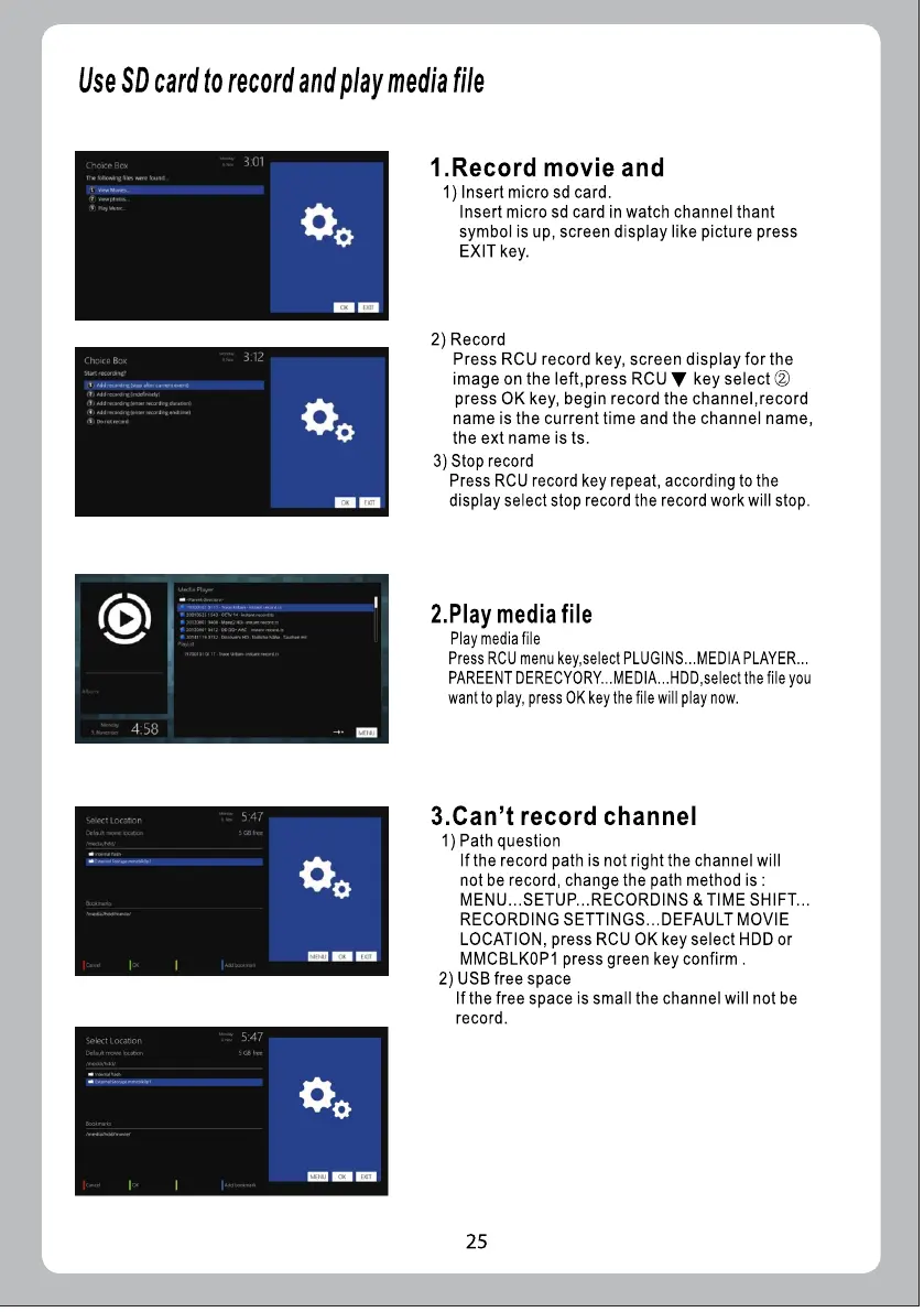 ZGEMMA H9S - SD Card Use; Record Movie; Play Media File; Cant Record Channel