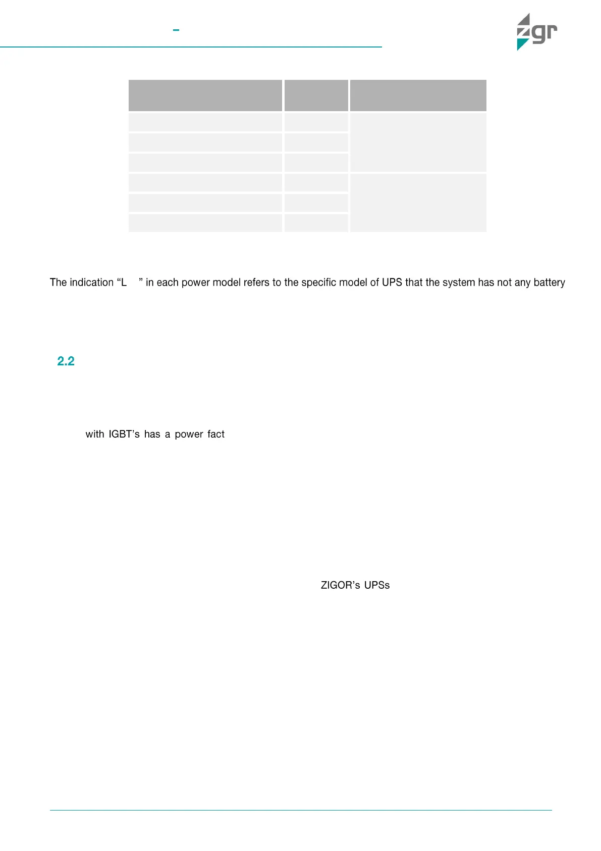 Table 2-1 ZGR TOWER PRO 1-3 KVA series range