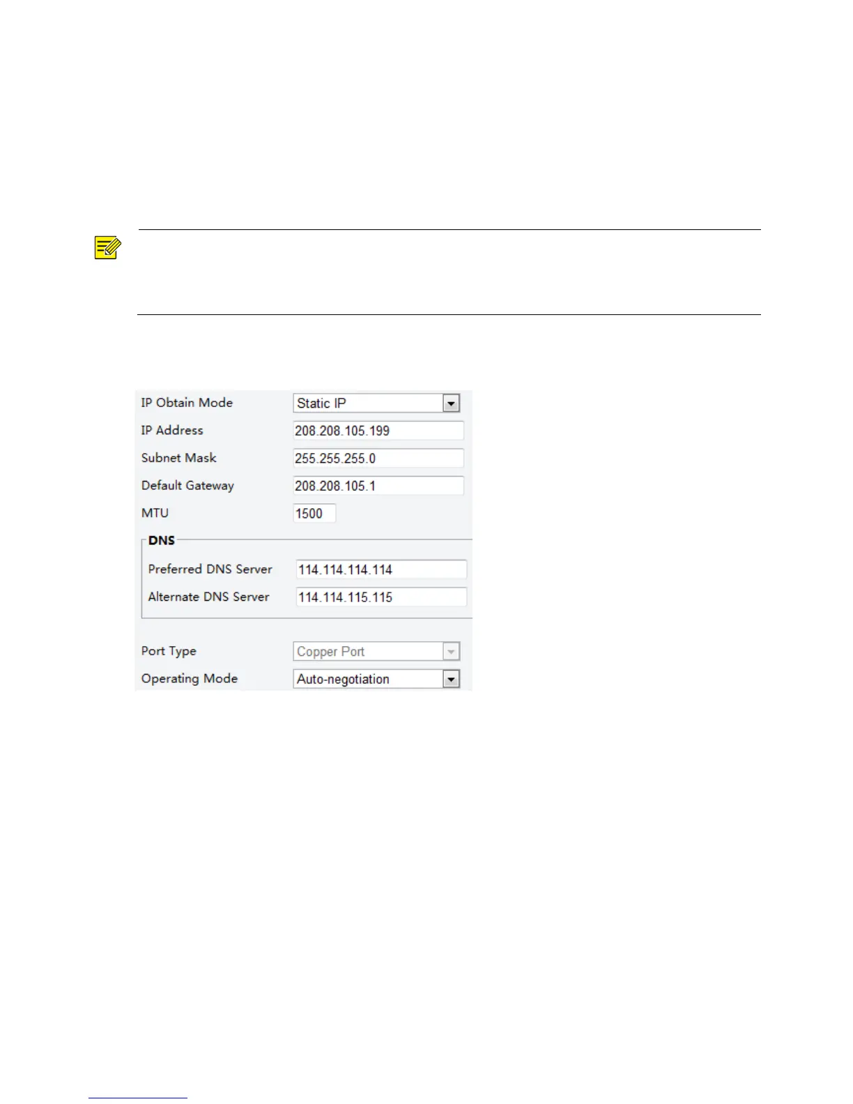 2. Select Static IP from the IP Obtain Mode drop-down list.
