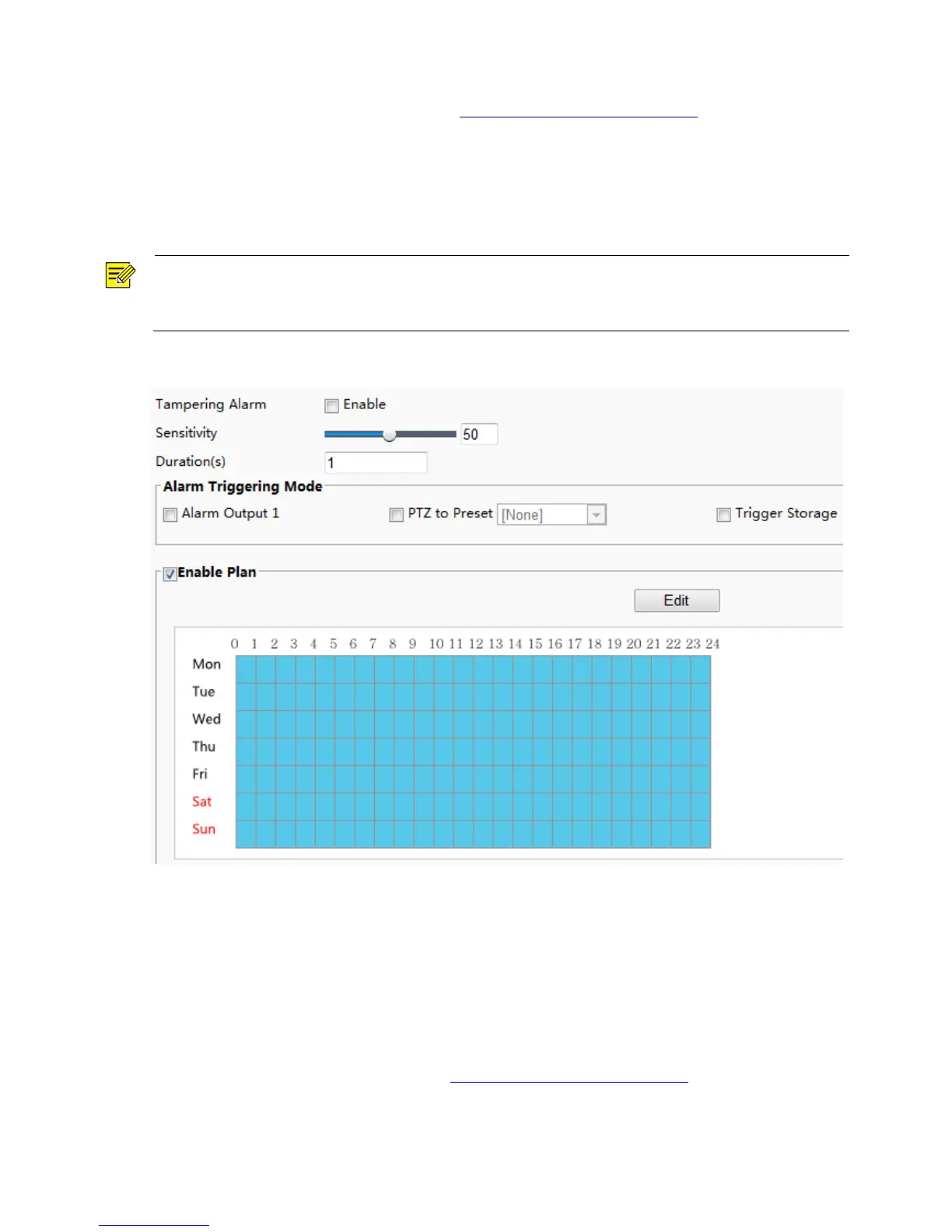 4. Set actions to be triggered by tampering alarms and the plan. For the detailed steps, see the
