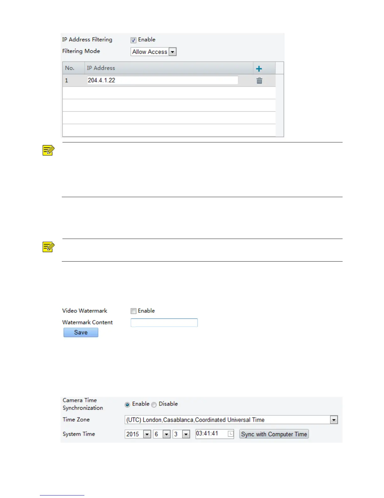 camera. If the filtering mode is set to Deny Access, the specified IP addresses are denied for the access.