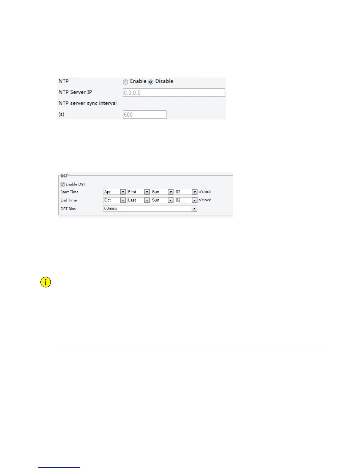 2. Select Enable DST, set the start time, end time, and DST bias.