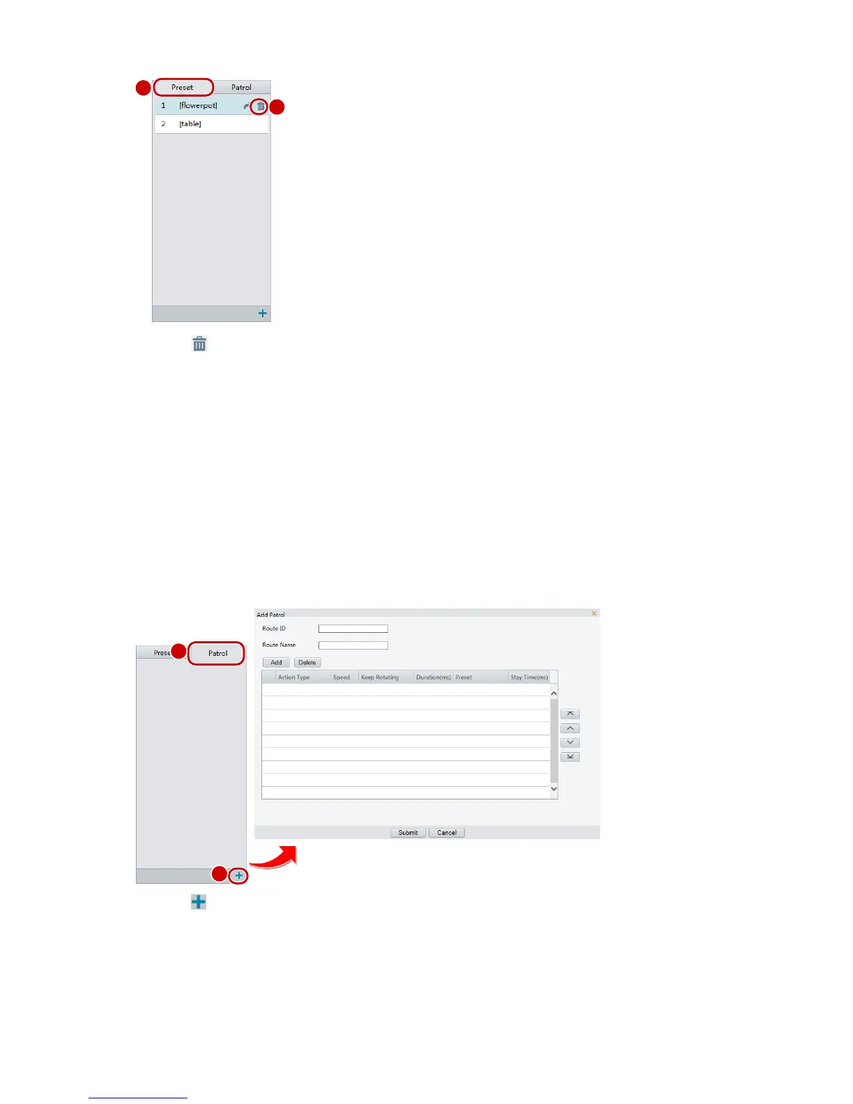 A patrol route is the track by which a PTZ camera follows when moving from a preset to the next. The