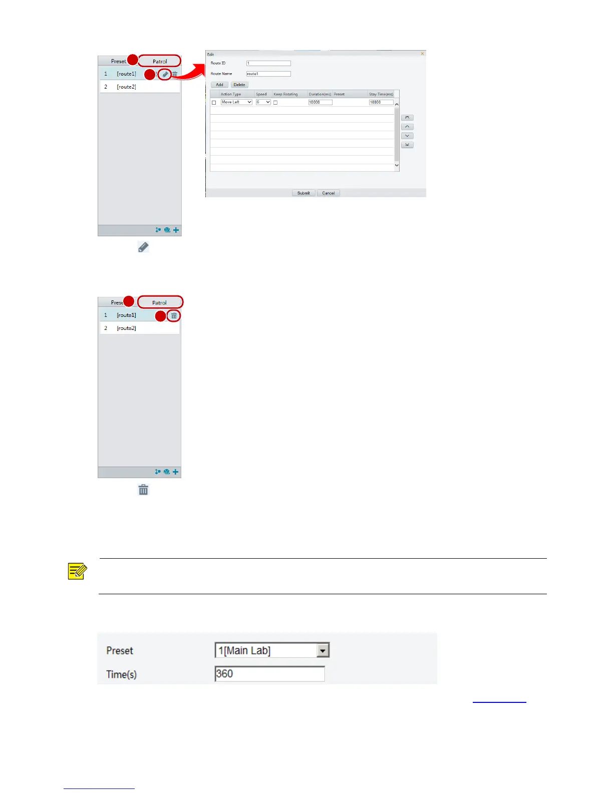2. Click for the patrol route you want to delete and then confirm the delete.
