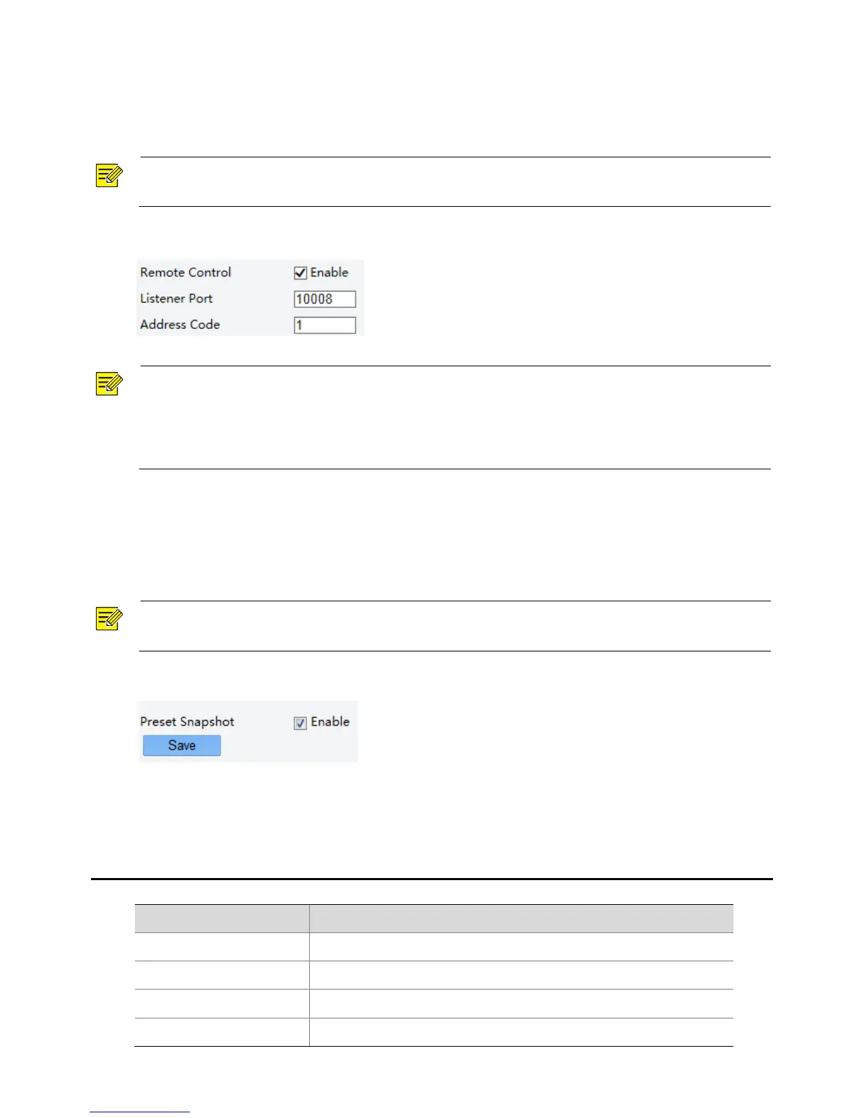 2. Under Remote Control, select Enable and set the listener port and address code.