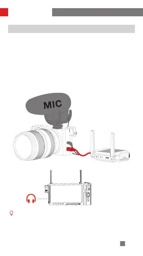 1. Install the microphone (not provided) to the hot shoe port of the camera, make
