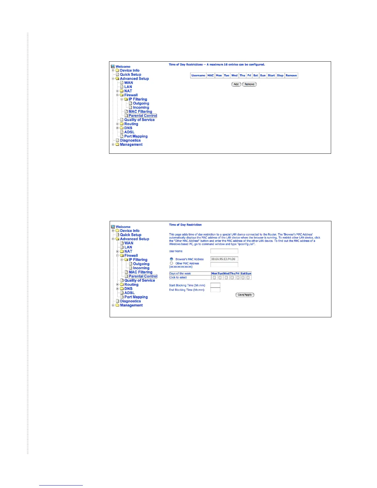 3 Enter the MAC address of the network adapter to be restricted, and,