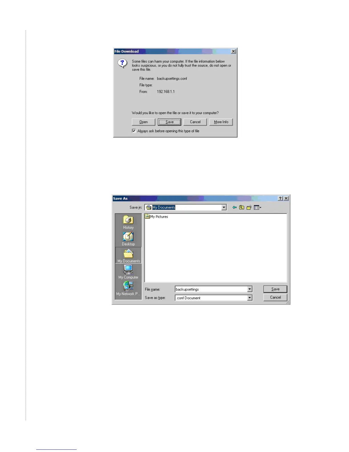 Figure 76: Backup Settings File Location