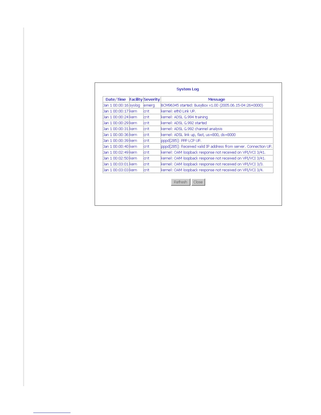 system log file) and displayed.