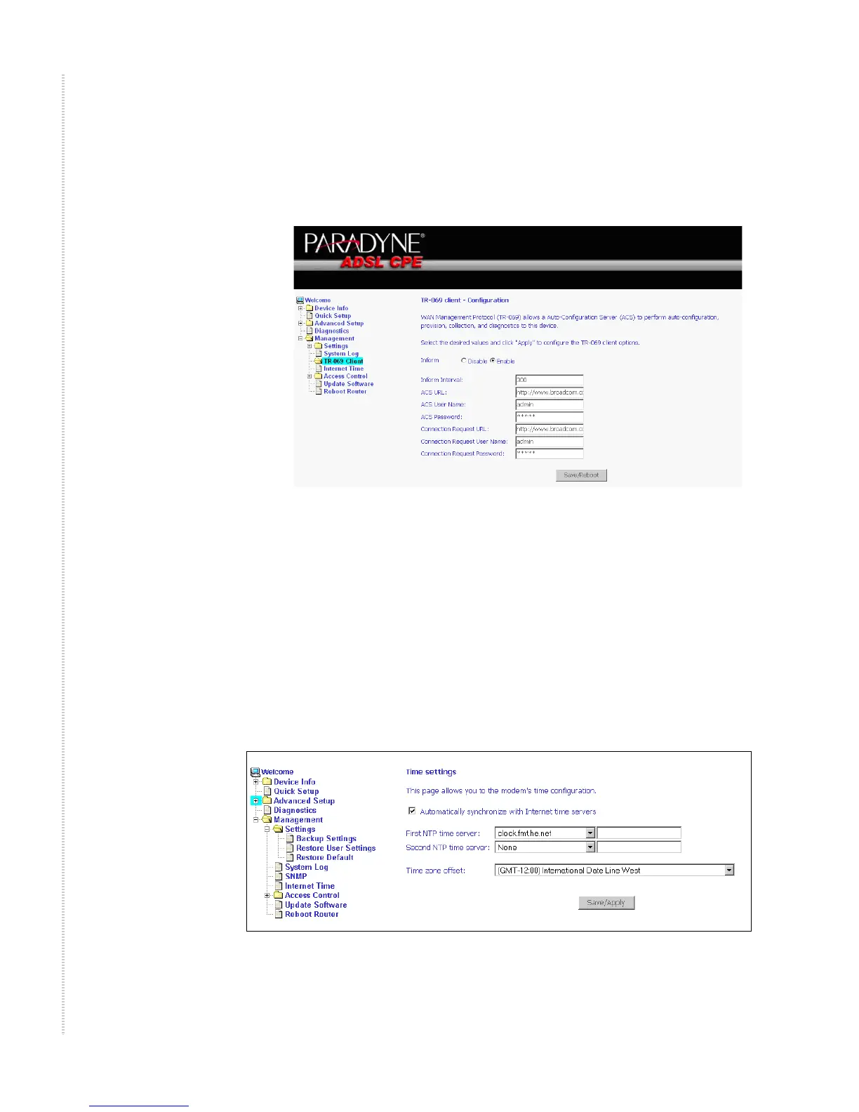 The router includes a TR-069 client which is a WAN management protocol.