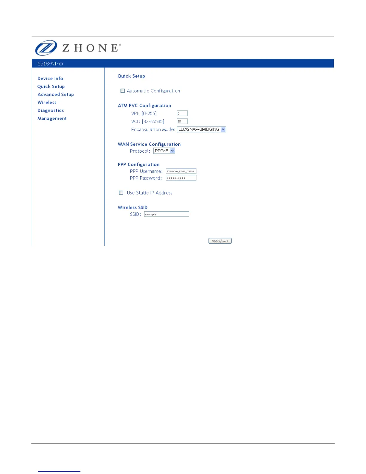 For PPPoE, if desired, the DSL Router can be configured with a static IP address and