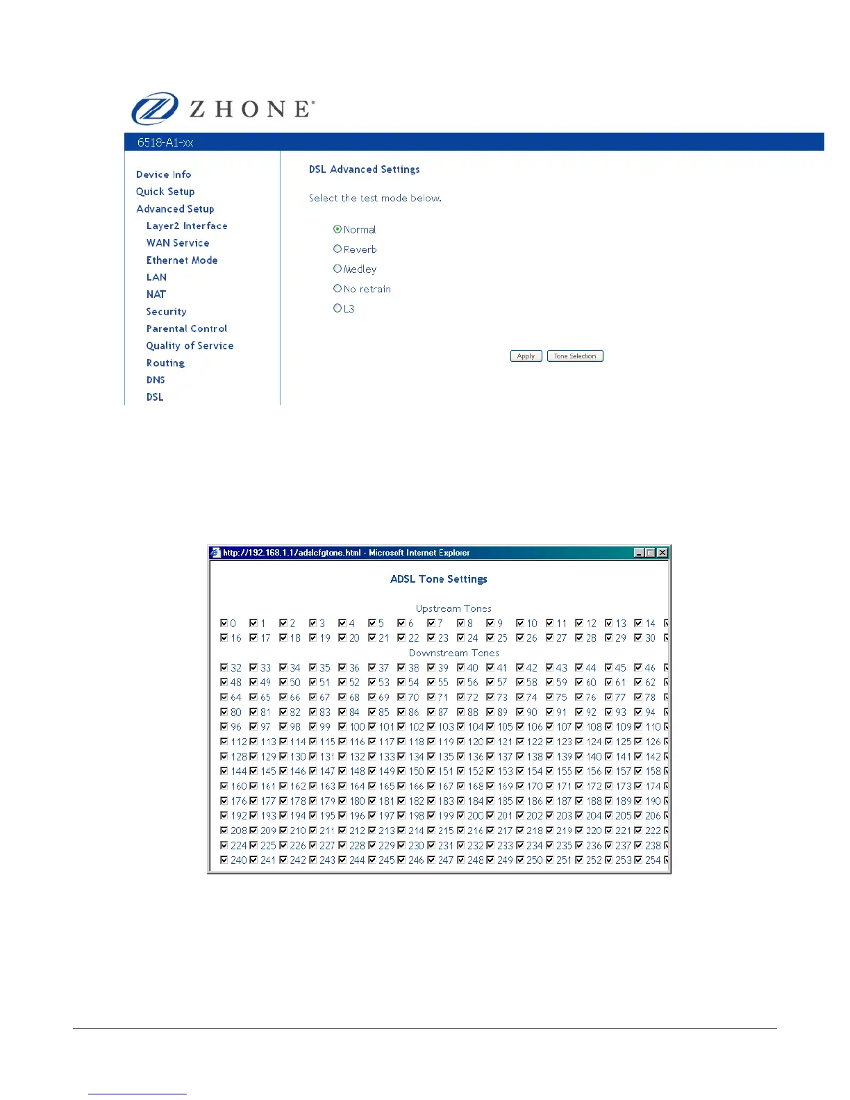 modems were running in parallel. The tone range is from 0 to 31 for upstream and from 32 to