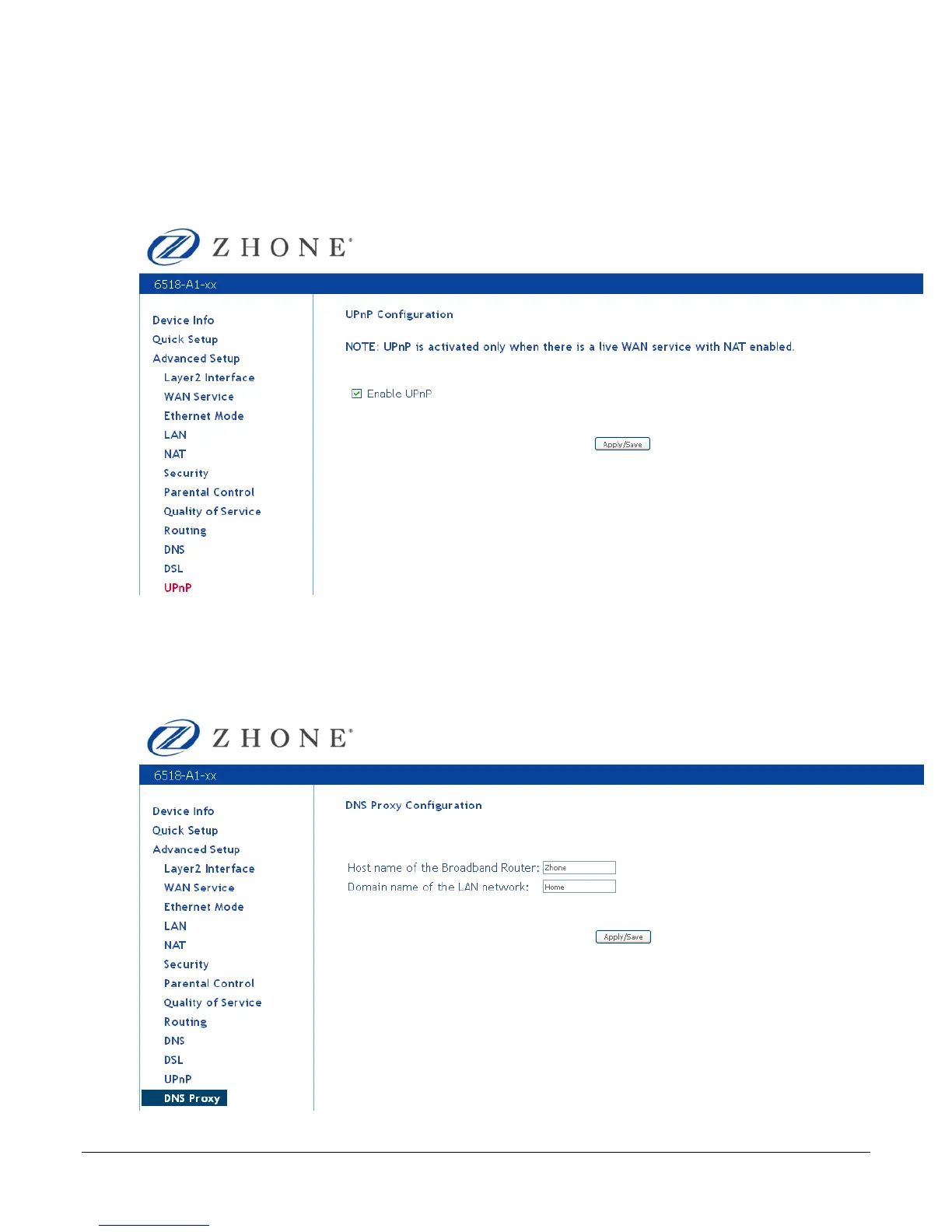 Zhone 6512-A1 - Upnp; DNS Proxy