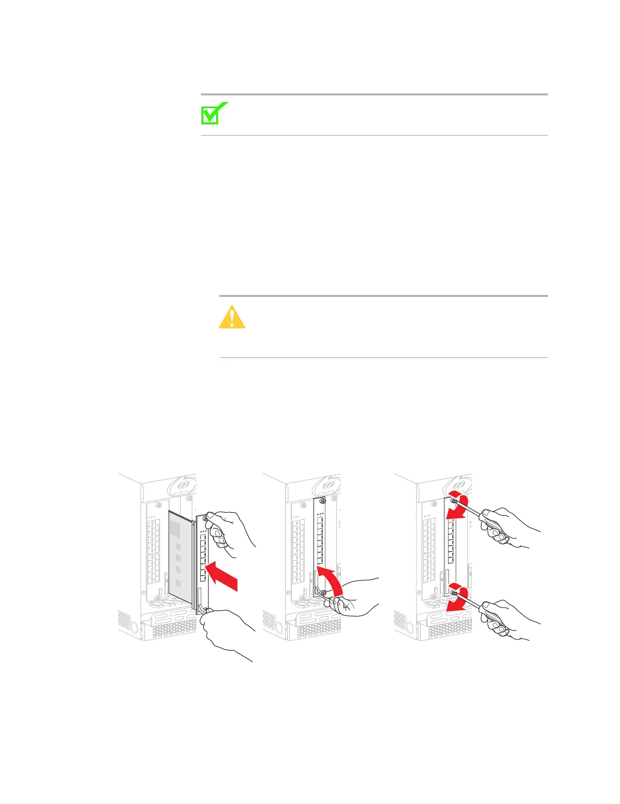 7 Tighten the top and bottom screws to seat the card in the backplane.