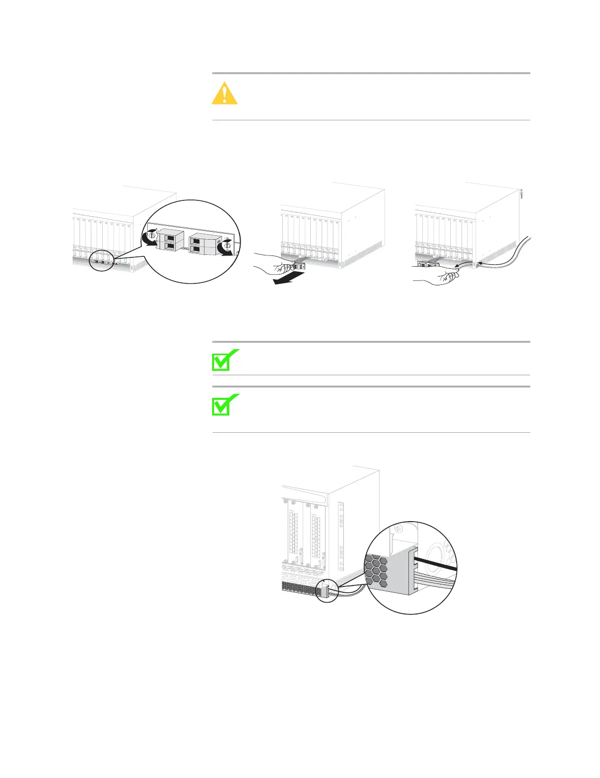 Figure 16: Threading the power and grounding cables behind the front bezel