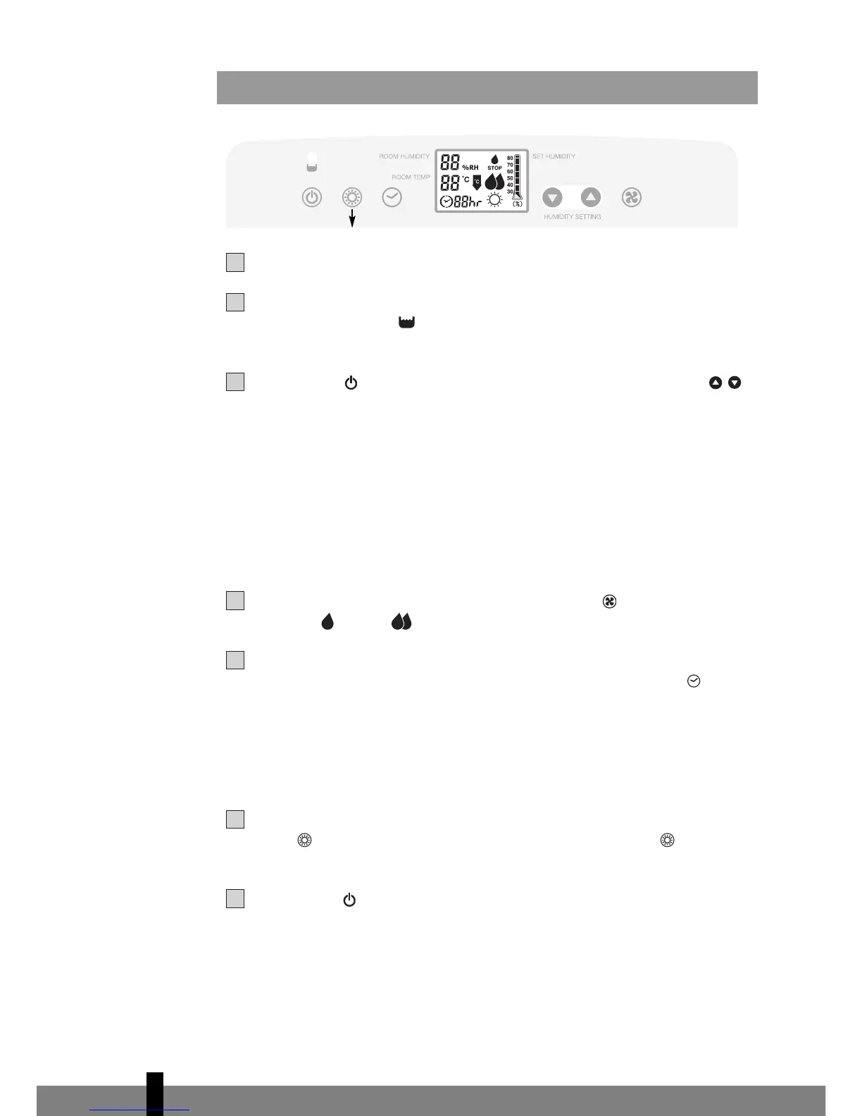 Pulse el botón para activar el deshumidificador. Los mandos reguladores se