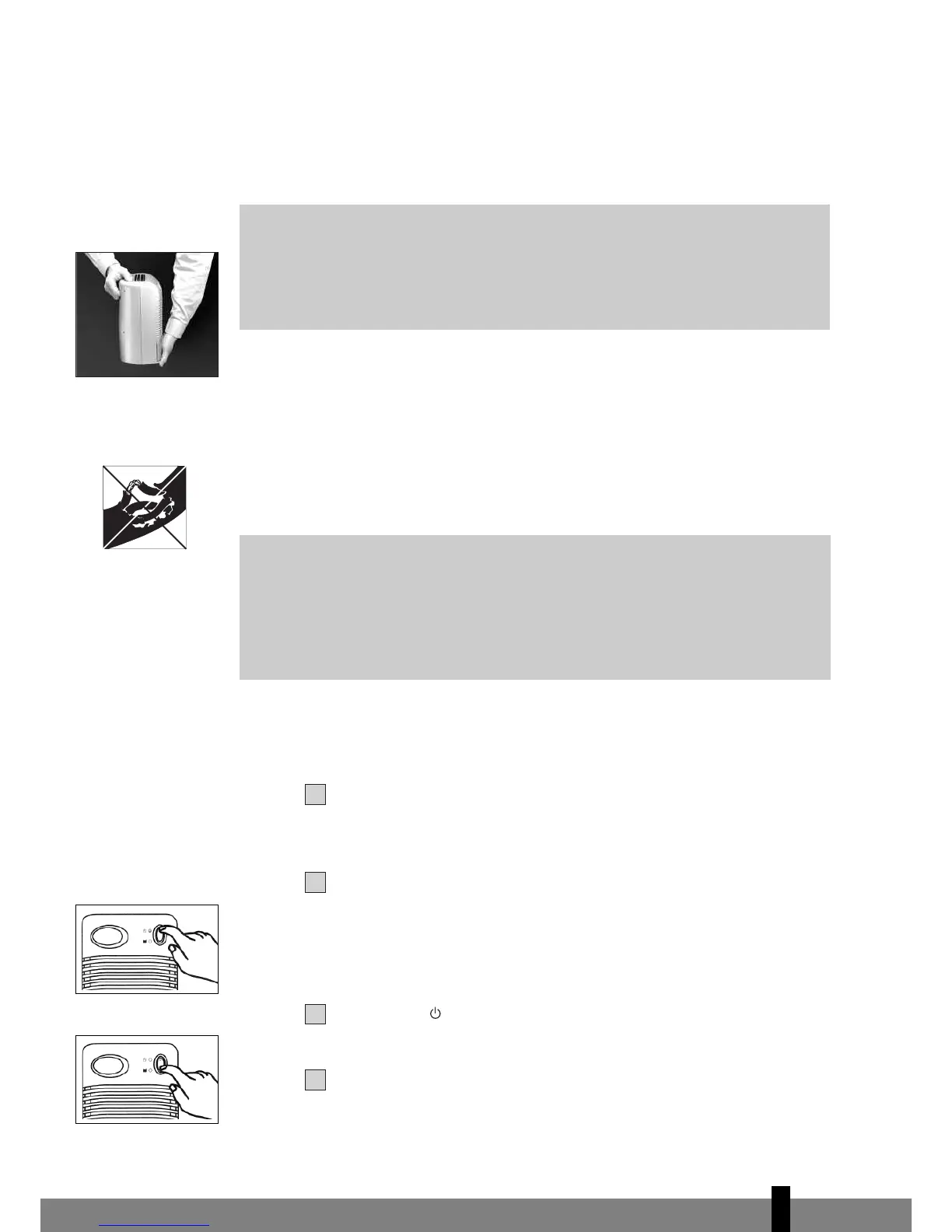 • For at undgå at apparatet vælter, skal tommelfingeren anbringes foroven i