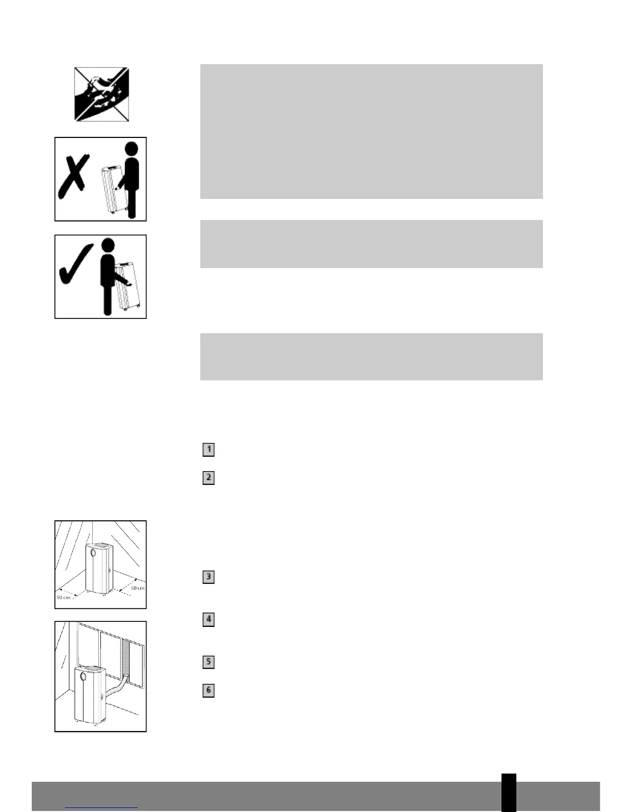 Don’t lift, or move by pushing, the air conditioner at the back side, but