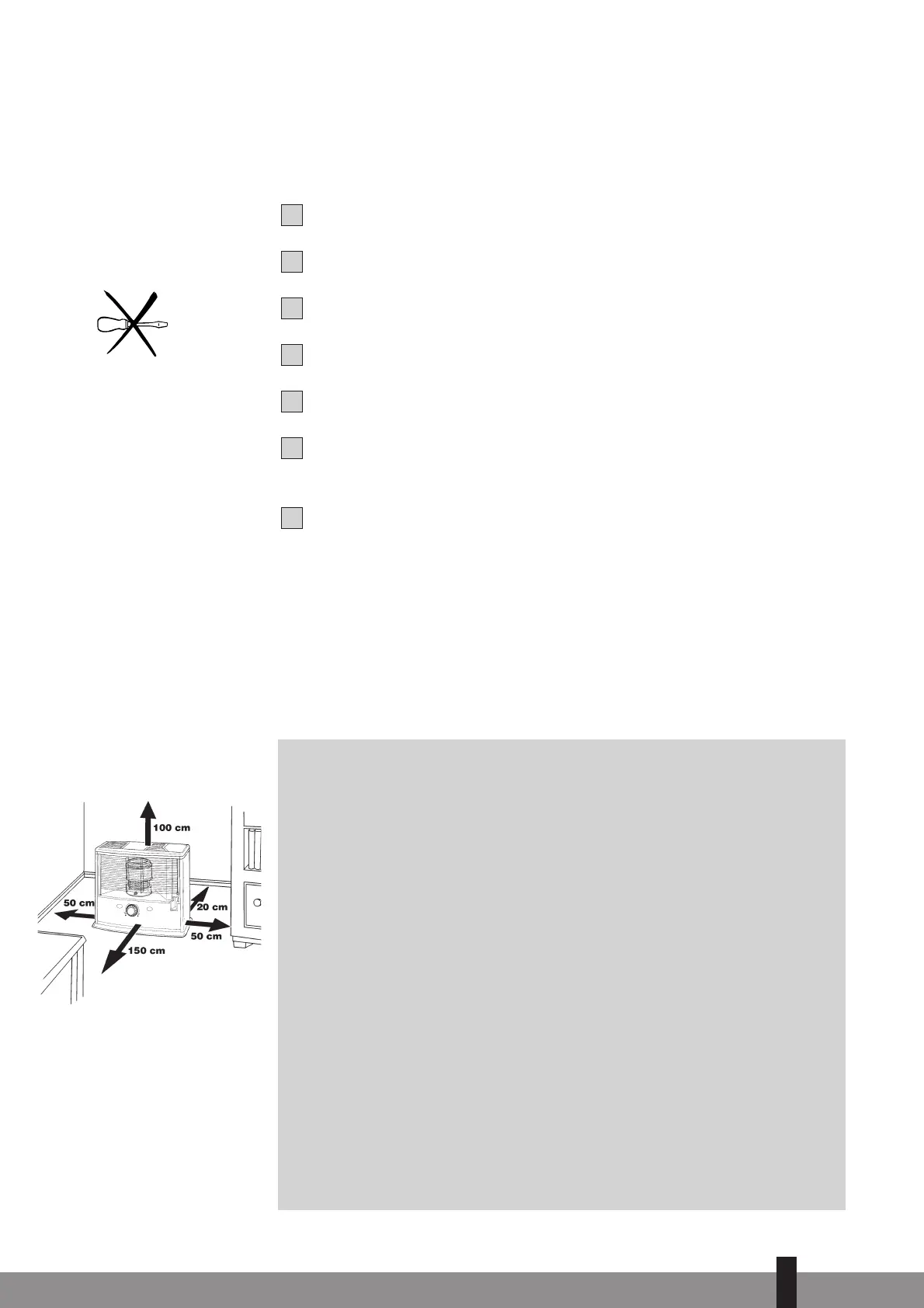 8 Never use the heater in places where harmful gasses or fumes may be