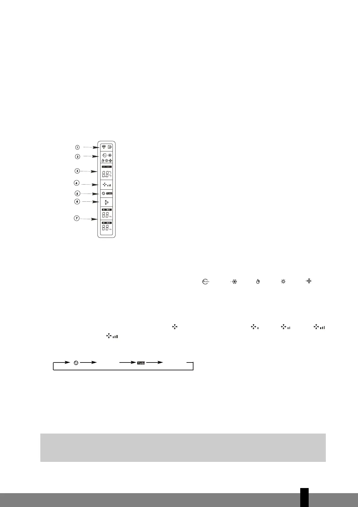 Cada vez que se pulse el botón Sleep/Turbo, en la pantalla quedará mostrada en la siguiente secuencia: