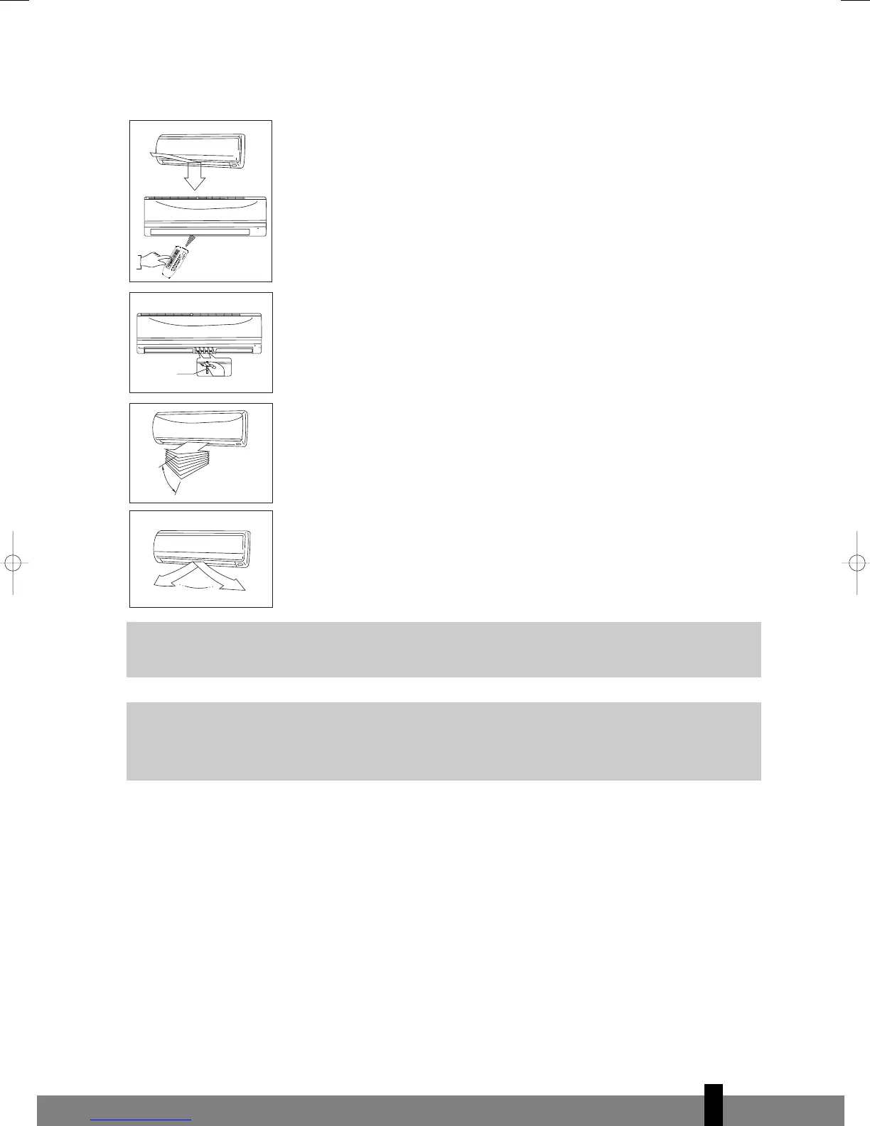 • Al encender de nuevo el aire acondicionado, el caudal de aire horizontal