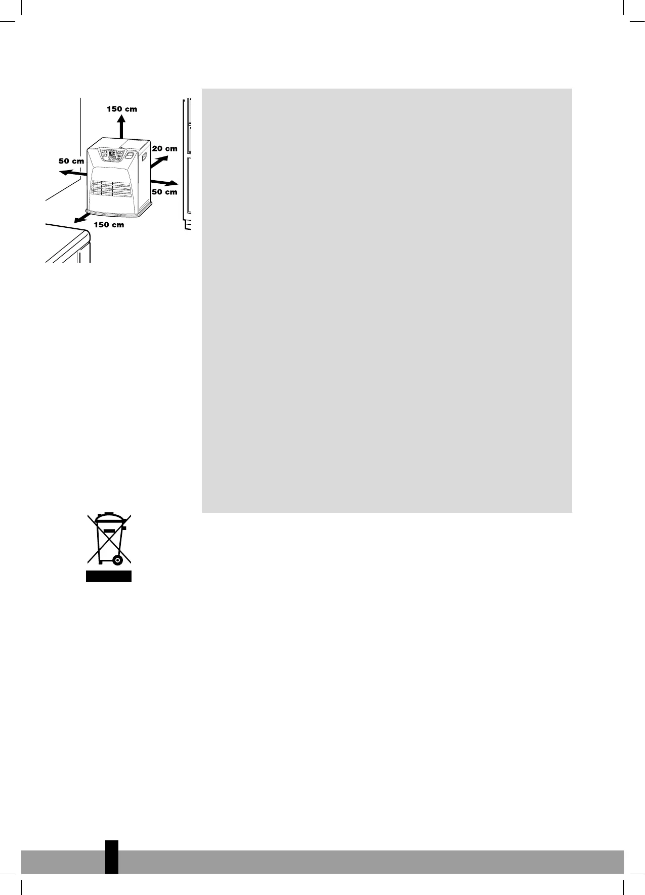 minimal 1,5 Meter von Mauern, Gardinen und Möbeln befindet. Achten