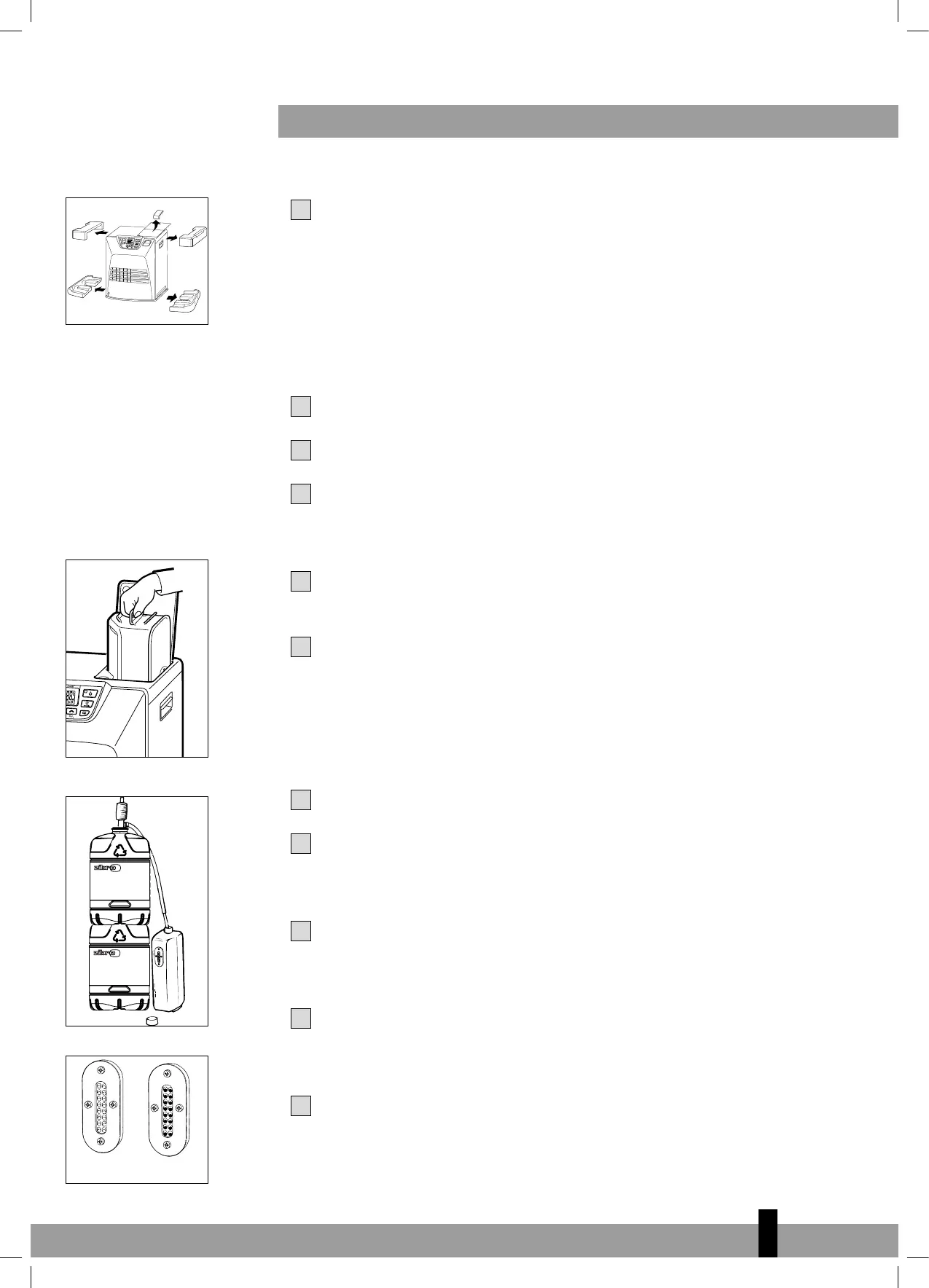 Fill the removable tank as indicated in Section B.