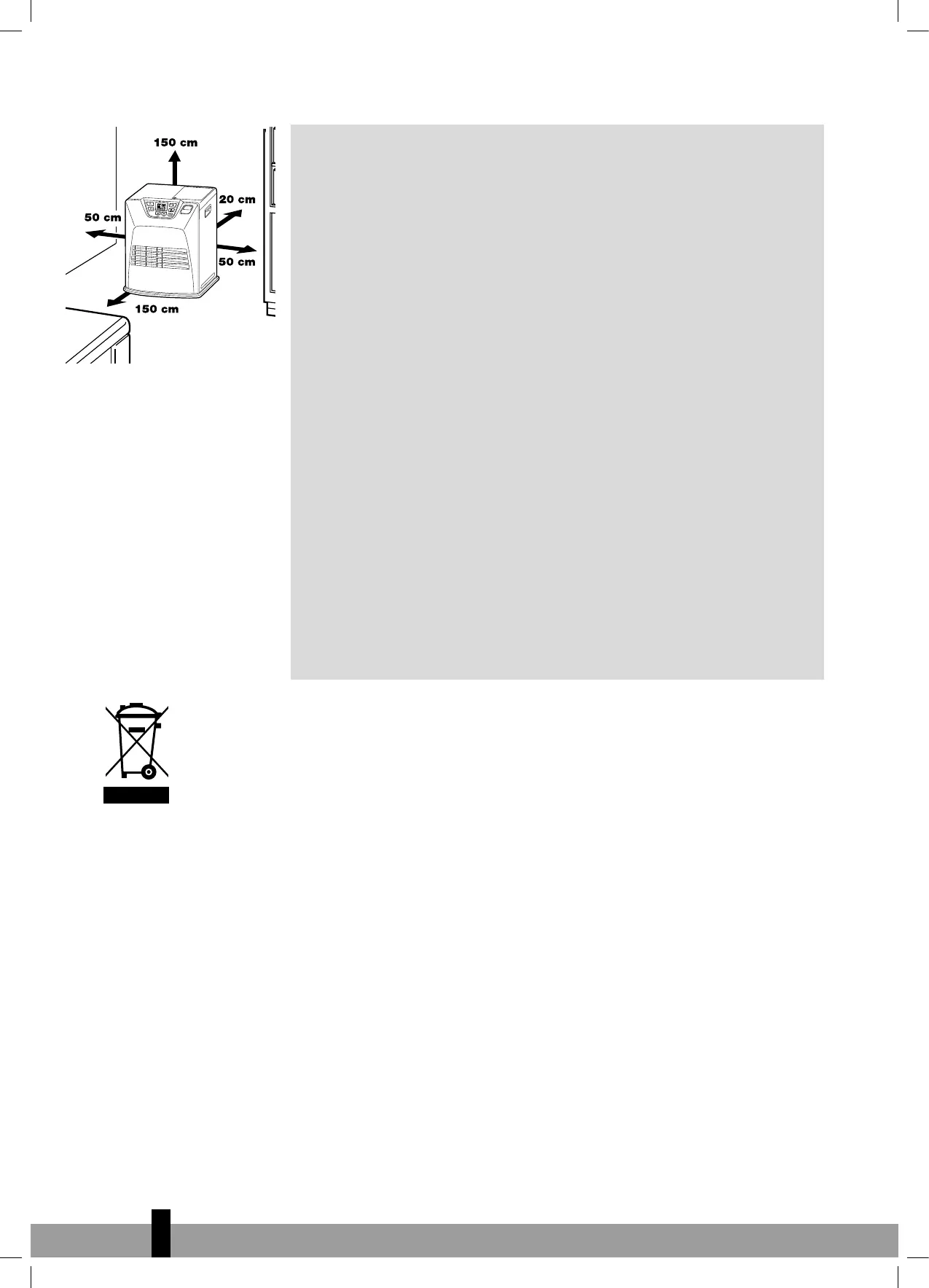 3 Position the front of the heater at a distance of minimum 1.5 metres