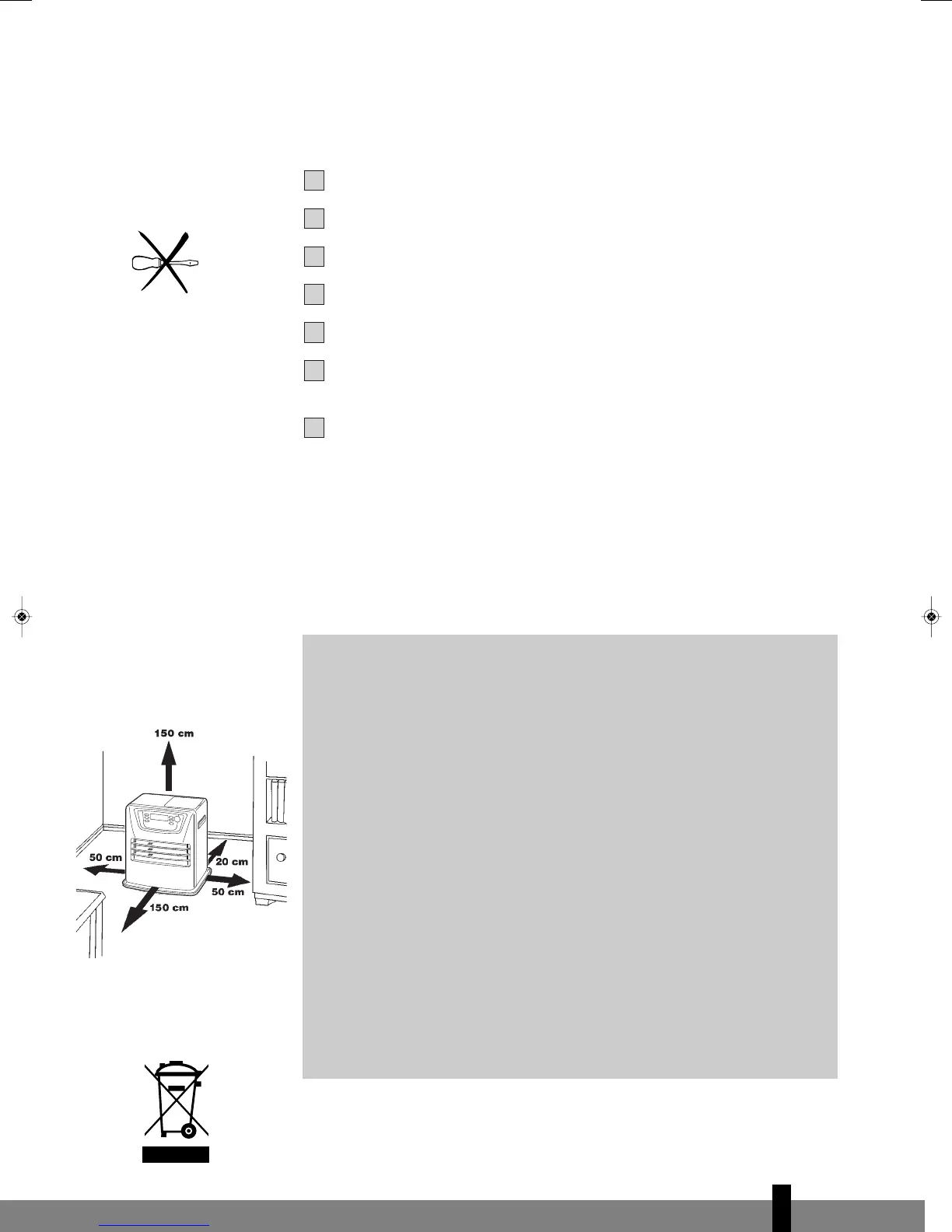 9 Beware that the grid of the heater becomes hot. If the appliance is covered