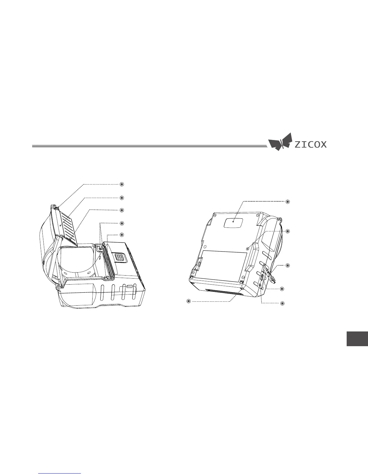 zicox XT423 - Printer Internal and Rear Components; Internal and Rear Component Labels