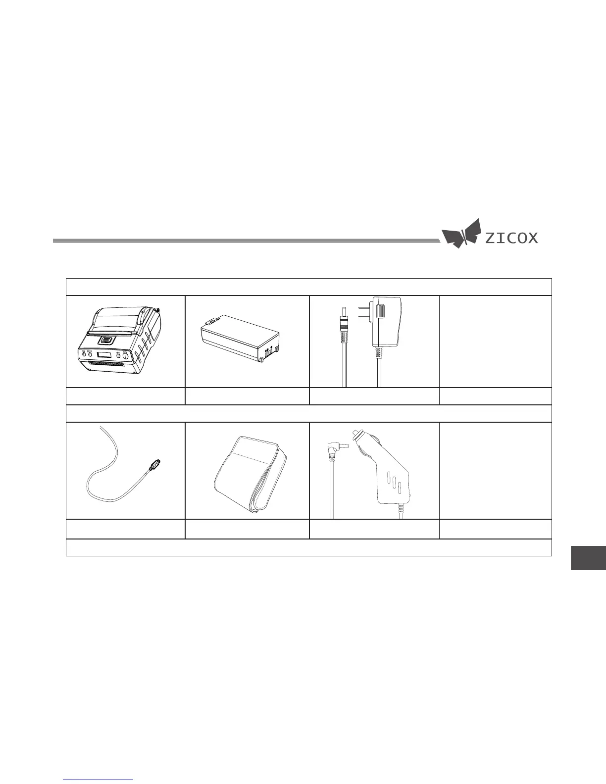 zicox XT423 - Printer Package Contents; Standard Accessories; Optional Accessories