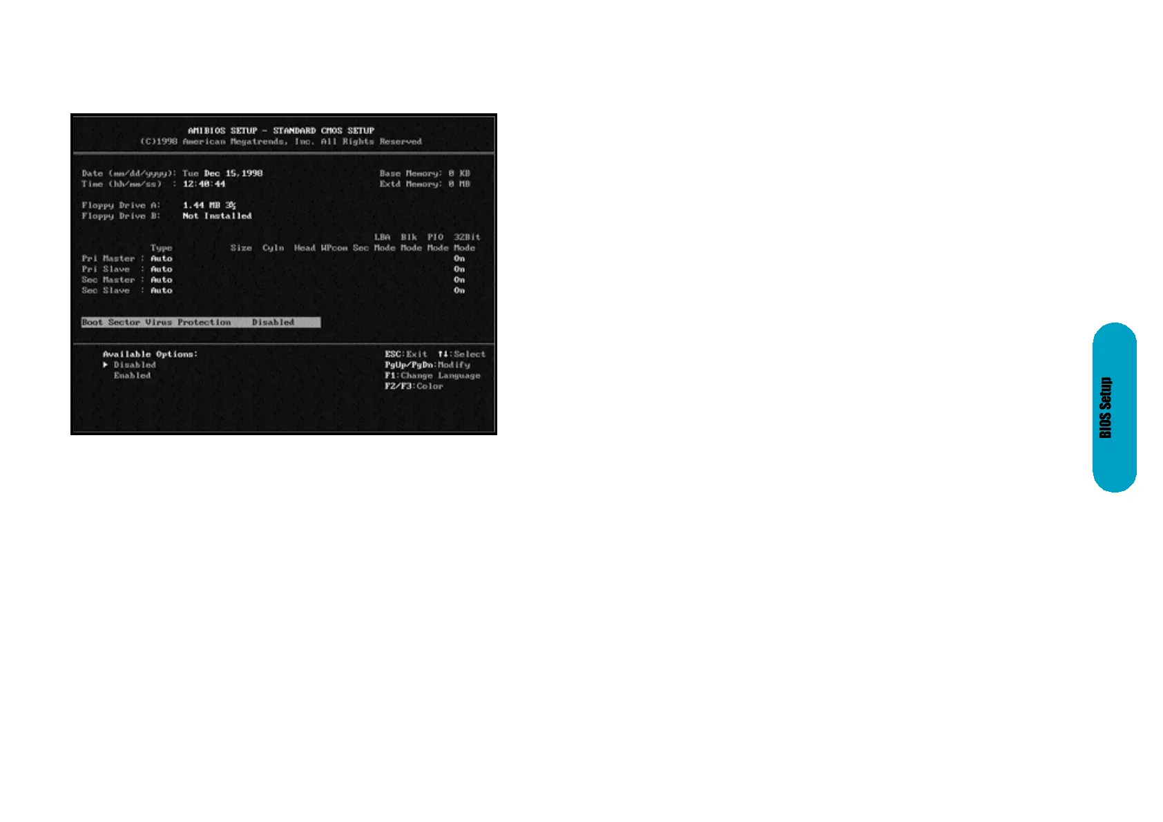 AMIBIOS. Setup main menu. Standard Setup options are described below.