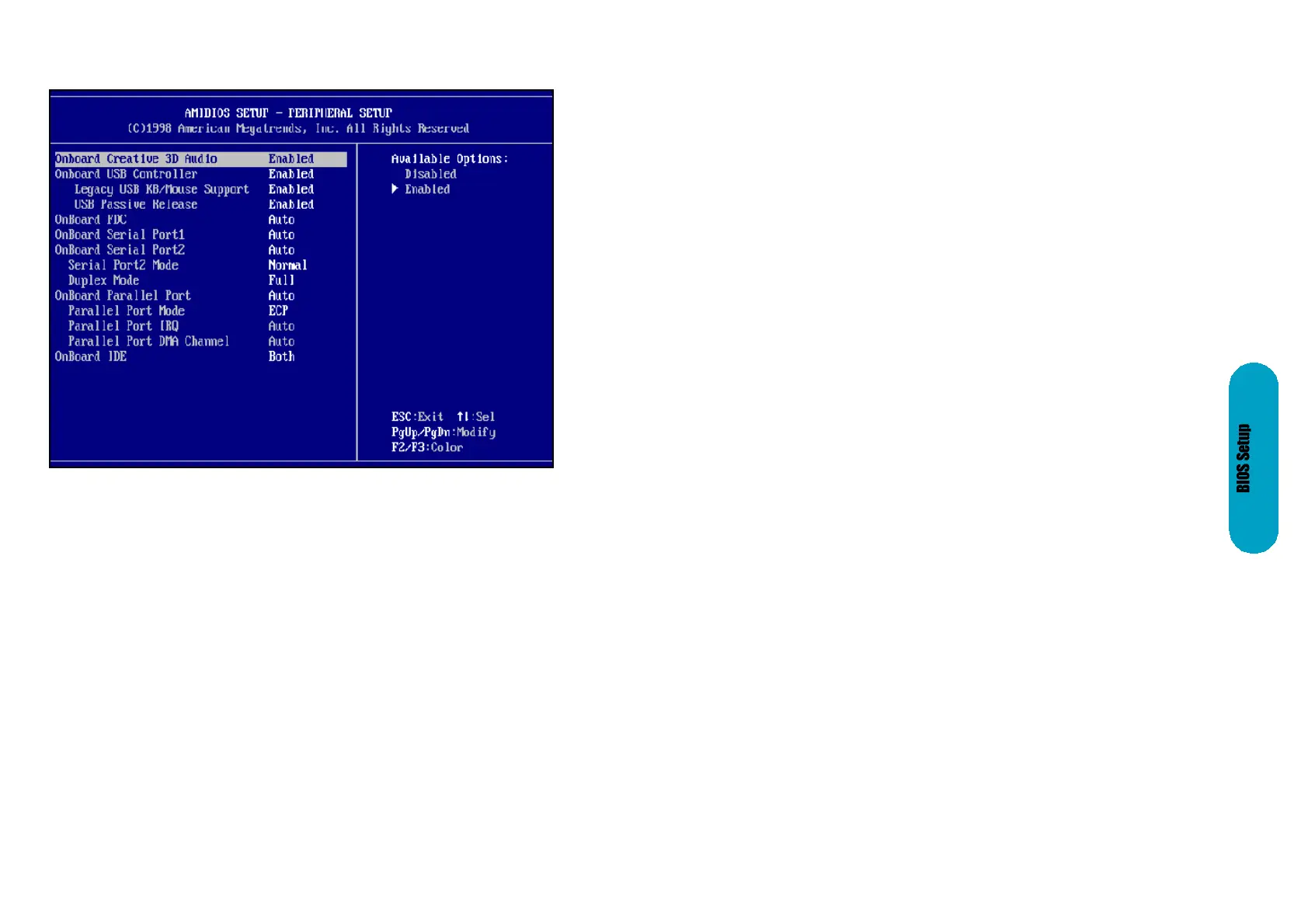 AMIBIOS Setup main menu. All Peripheral Setup options are described here.