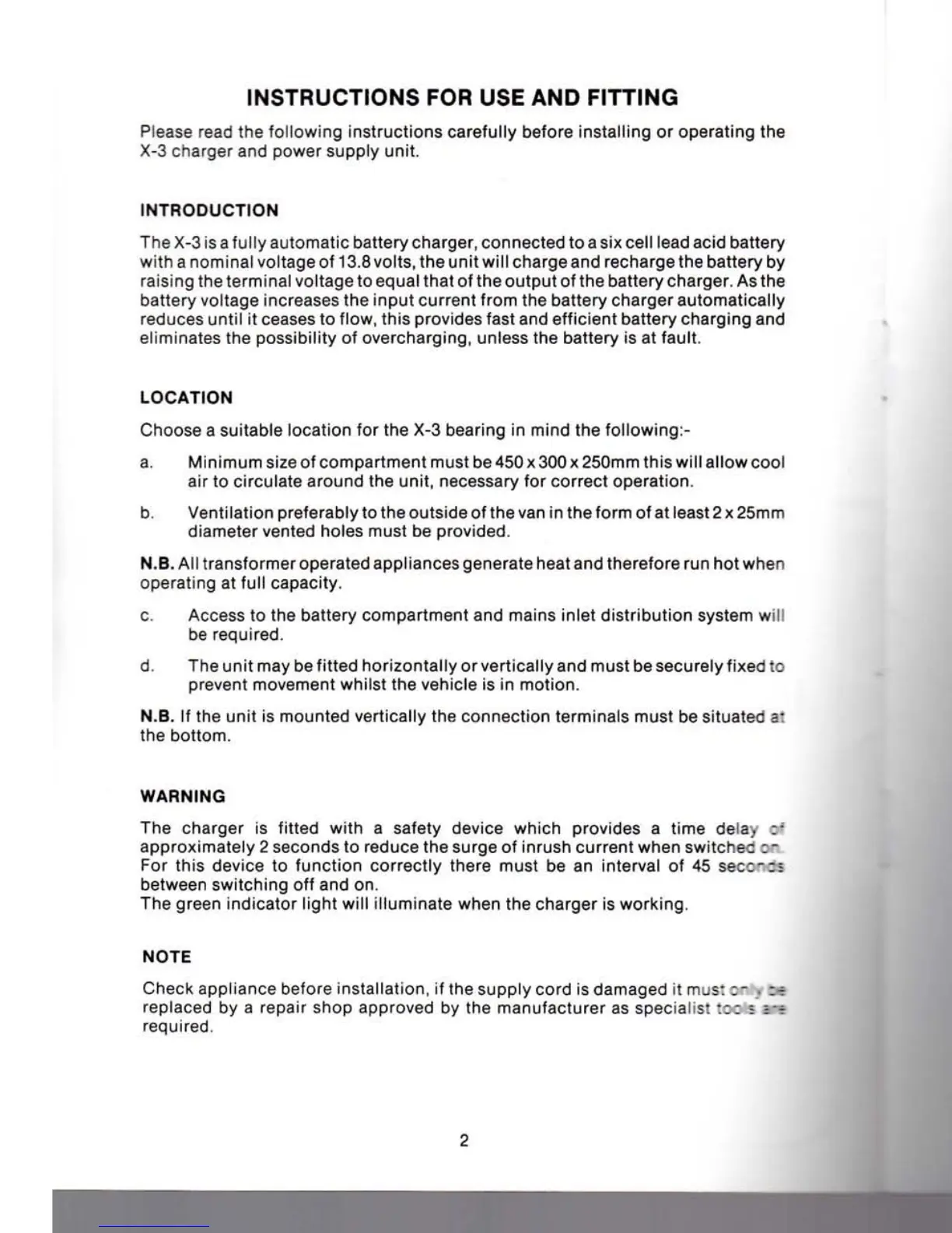 The X-3 is a fully automatic battery charger, connected to a six cell lead acid battery