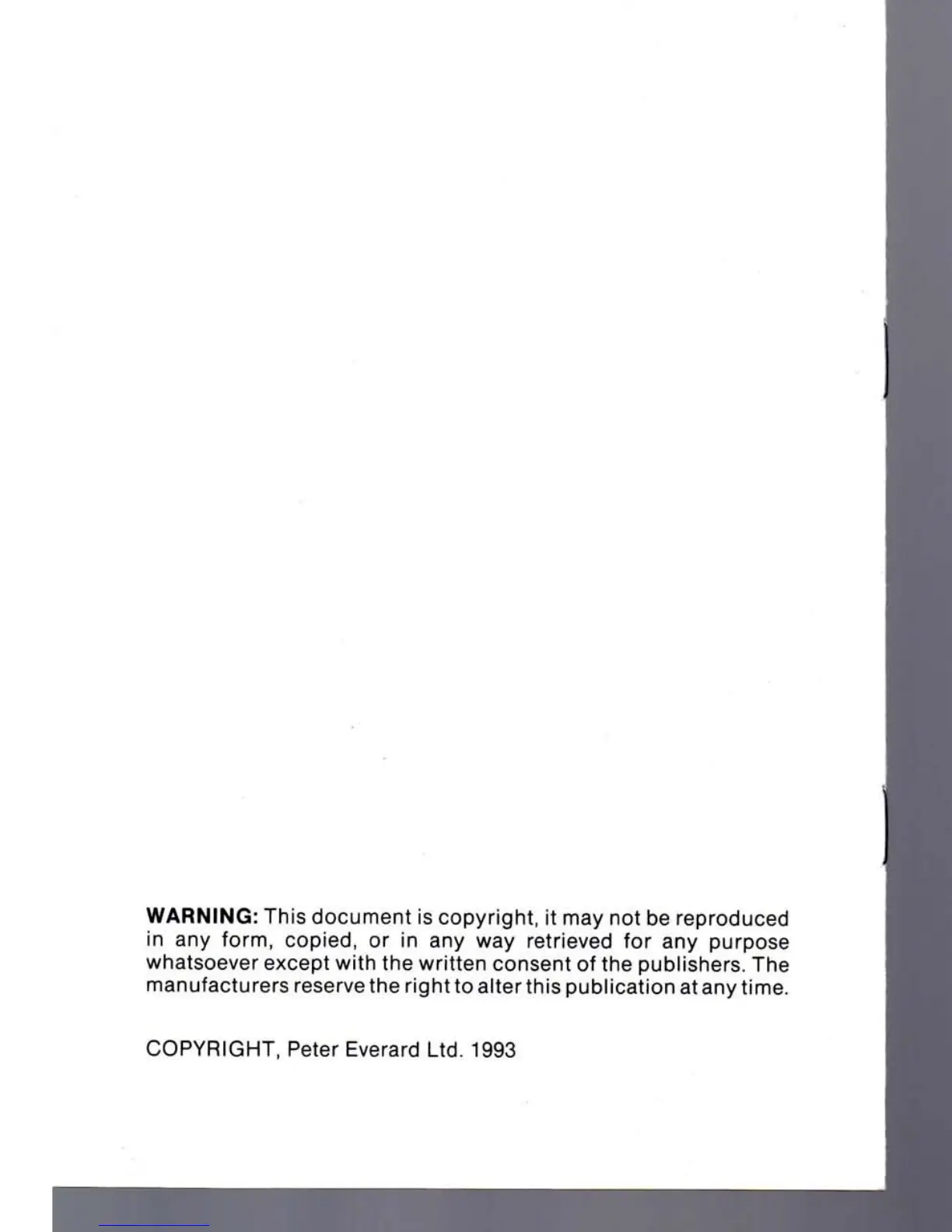COPYRIGHT, Peter Everard Ltd. 1993