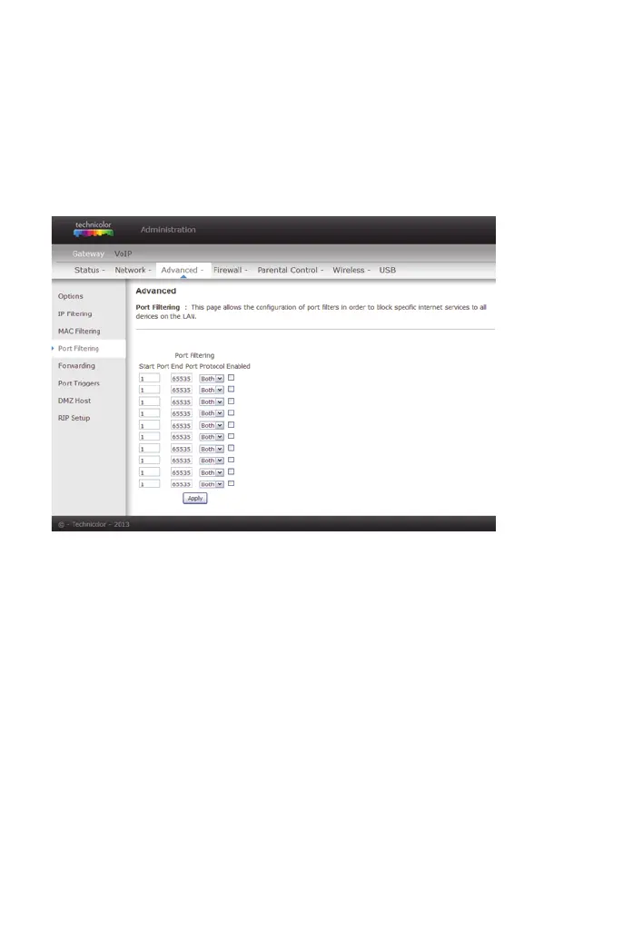 figure 30: Gateway\Advanced\Port Filtering