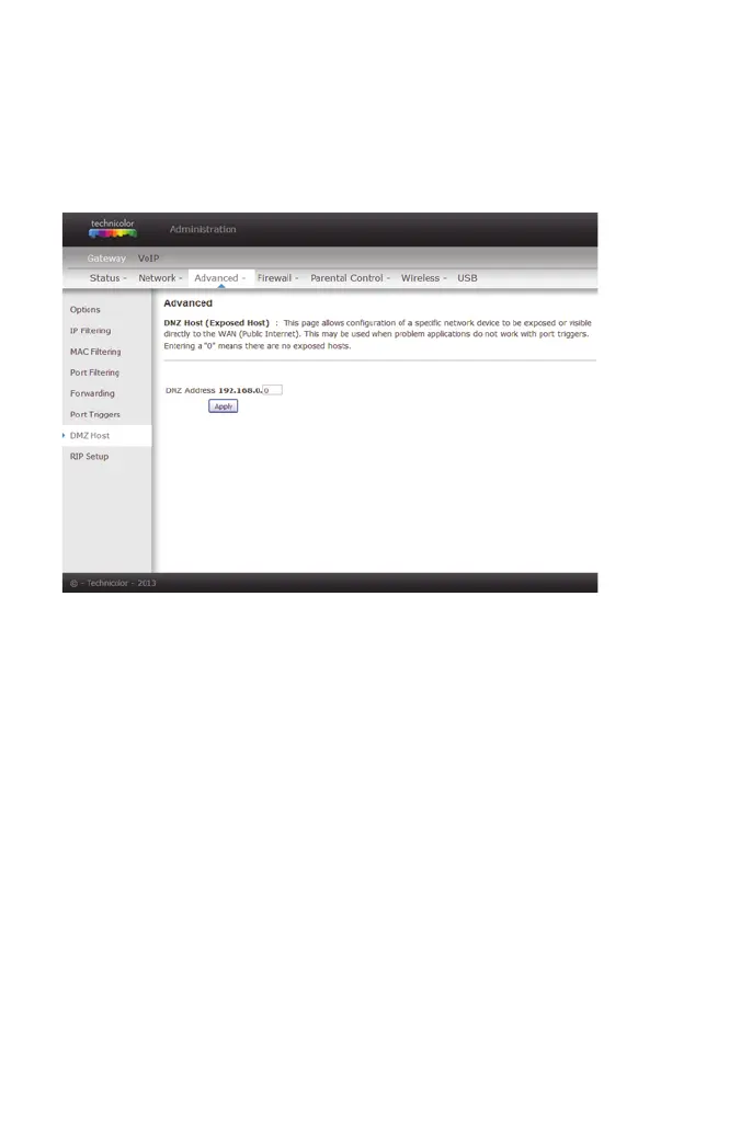 figure 37: Gateway\Advanced\DMZ Host