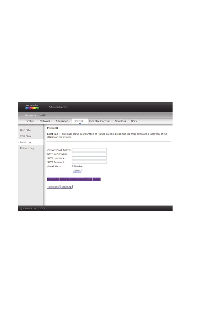 Using the Local Log page lets you specify an email address to which you want