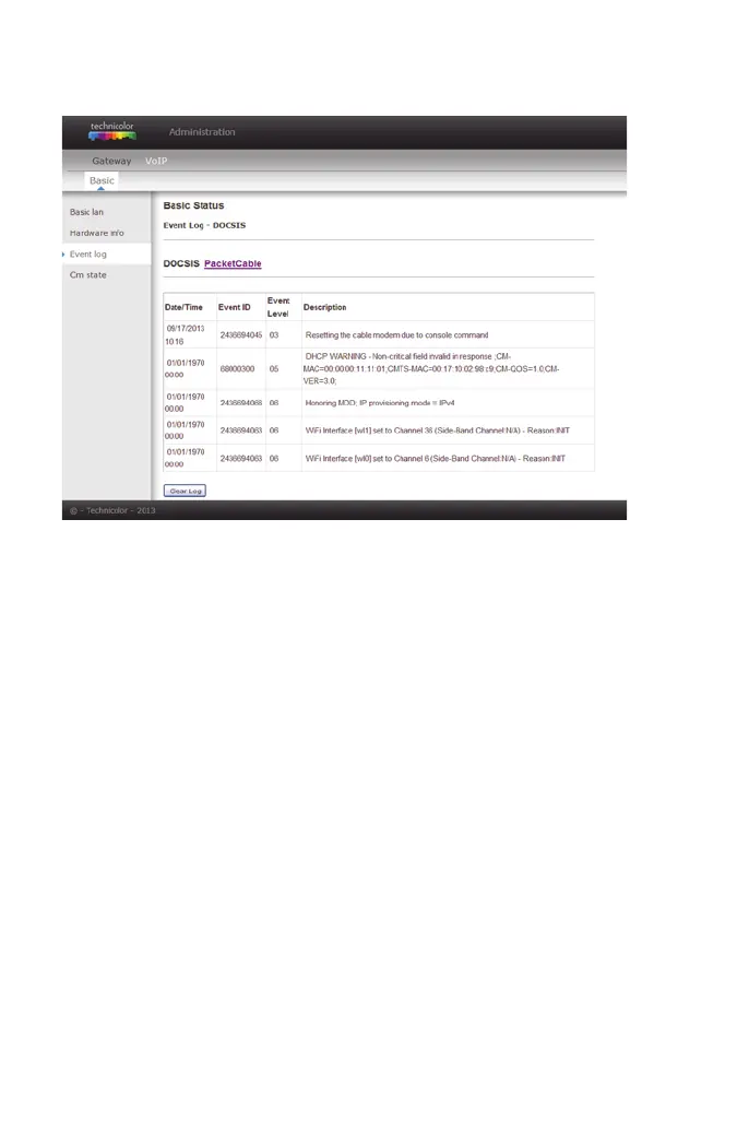 figure 64: VoIP\Basic\Event log\DOCSIS