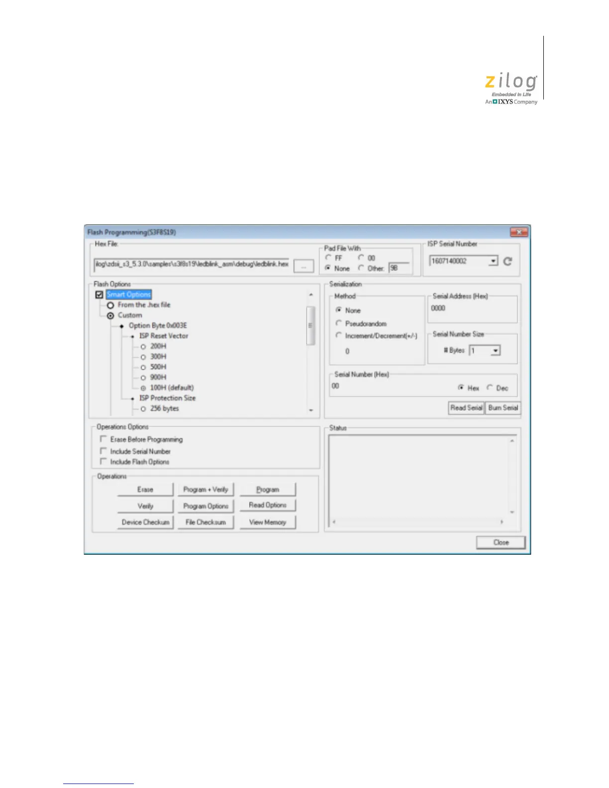 A Flash Loader utility is included in Zilog Developer Studio II via the Tools menu.
