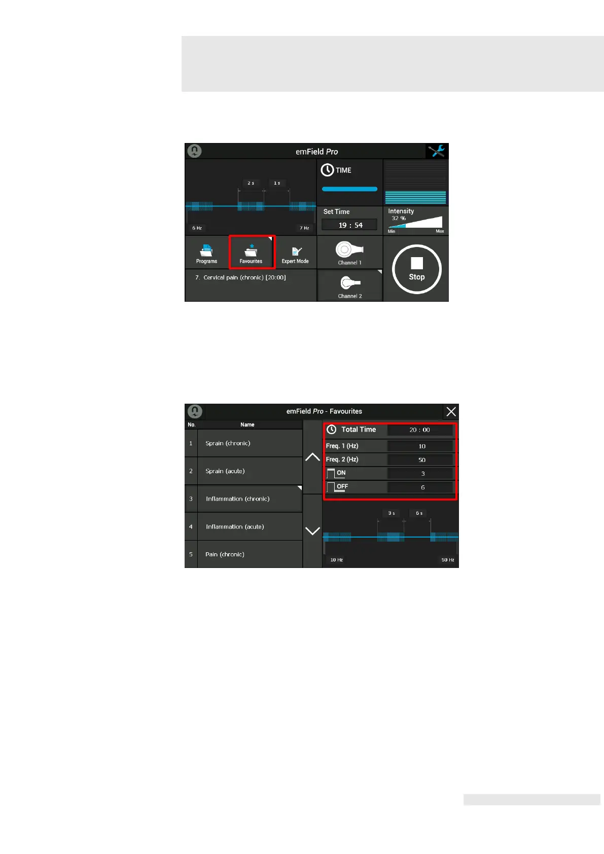 Press the Favourites button for 2 ~ 3 seconds to set the parameters on touch