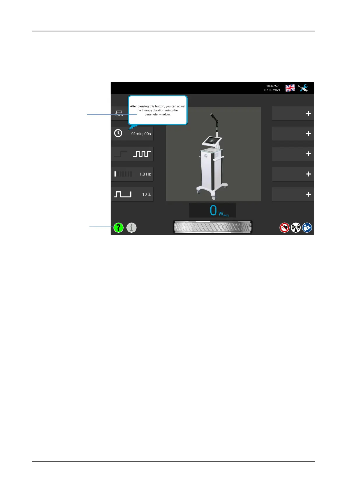 To call up the direct help press the “?” button. The button lights up green after selection.