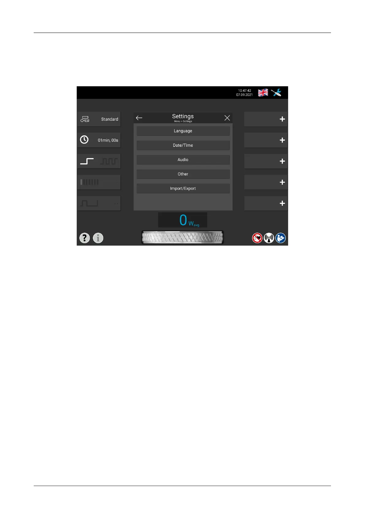 Fig. 7-5 Settings menu