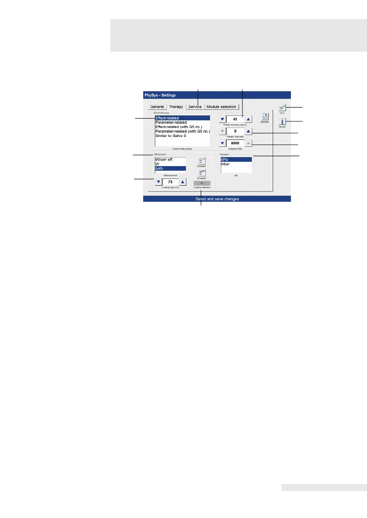 A uniform therapy time for all programs can be set using the two arrow buttons.